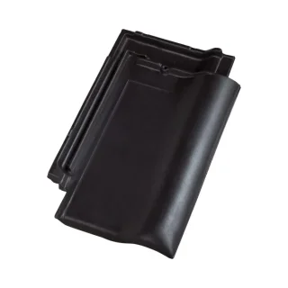 KORAMIC Renesansowa Universo 10 to klasyczna dachówka ceramiczna renesansowa w kolorze czarnej angoby, wyróżniająca się tradycyjnym kształtem fali, który podkreśla pionowe linie połaci dachu. Jej forma nadaje pokryciu elegancki i harmonijny wygląd, akcentując rytm oraz smukłość dachu.